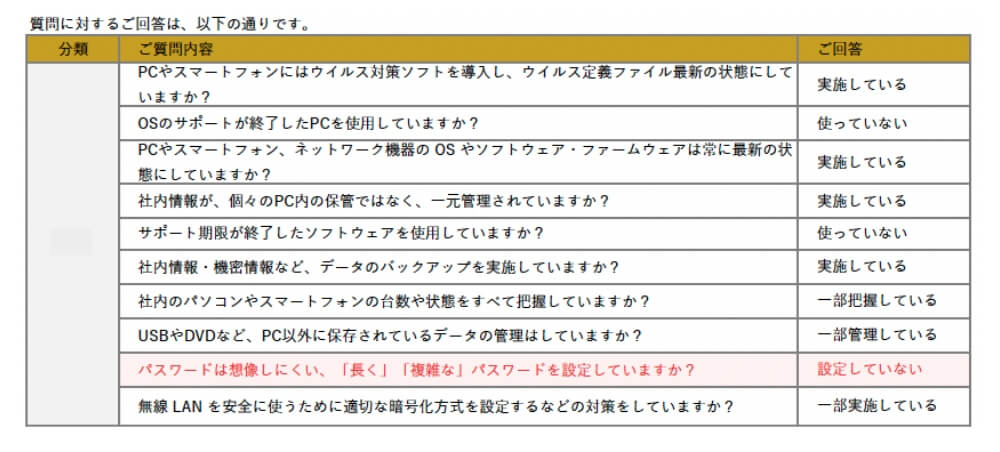 従業員のセキュリティ教育状況など