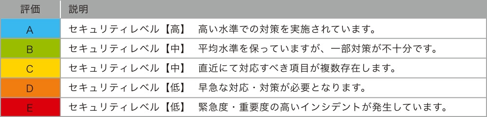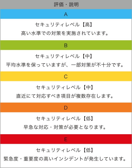 セキュリティレベルをA〜Eの5段階で評価します