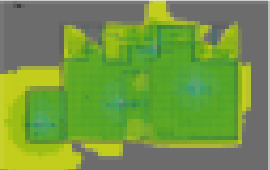 - 導入アクセスポイント数の算出が仮想上で可能です。電波の到達状況を把握し、必要なアクセスポイントの台数を算出します。