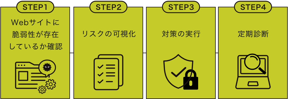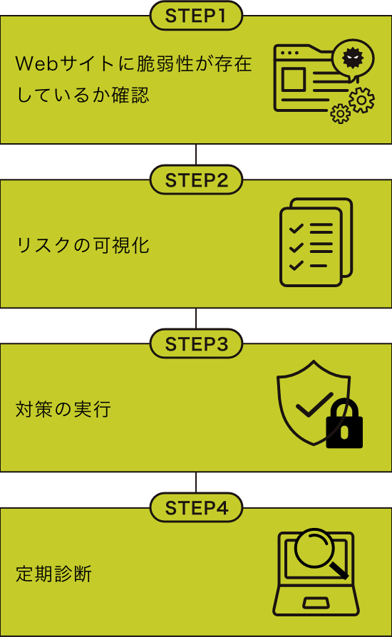 診断を通してシステムのセキュリティ状況・リスクを可視化し、適切な対策をご提案して、Webサイトの安全性を維持します。